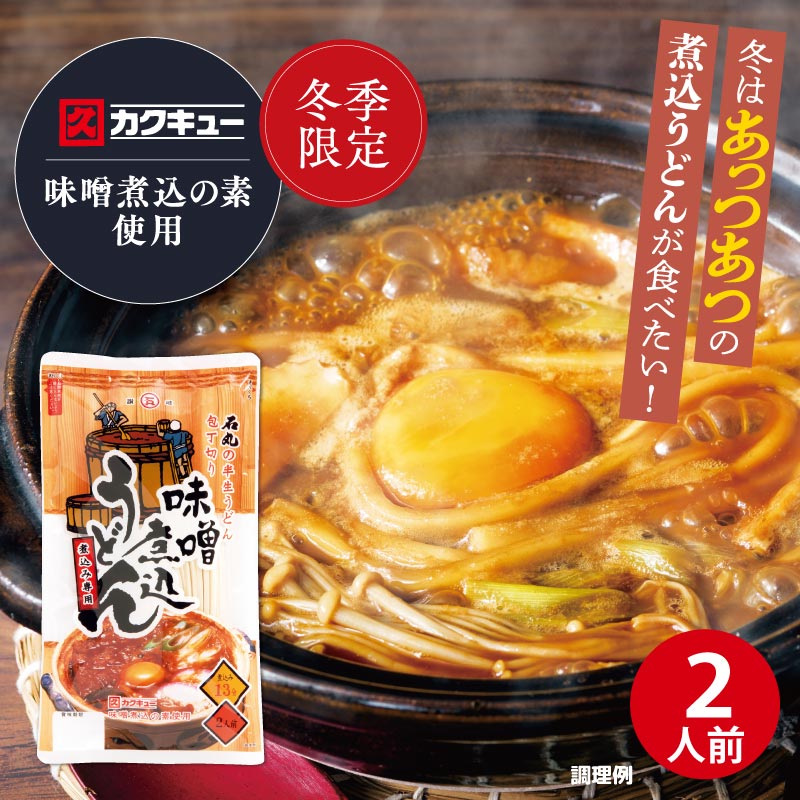 煮込専用の包丁切り半生うどんに、八丁味噌特有のコク、風味が自慢の【カクキュー】の味噌煮込の素をセットにしました。お鍋ひとつで本格的な味噌煮込うどんがお楽しみいただけます。魚介類や肉、お野菜などお好みの具材と一緒に煮込めば味も栄養も大満足。 ●9月~3月の季節限定商品 |