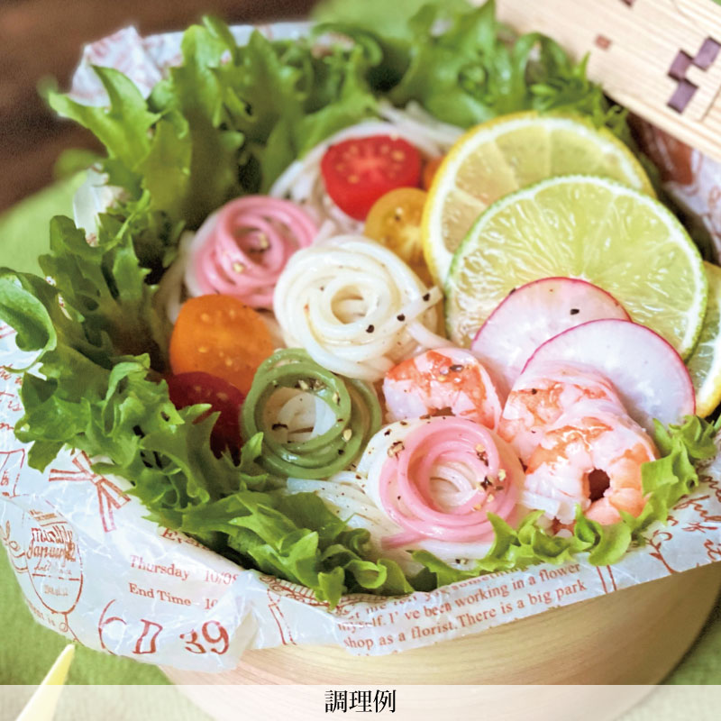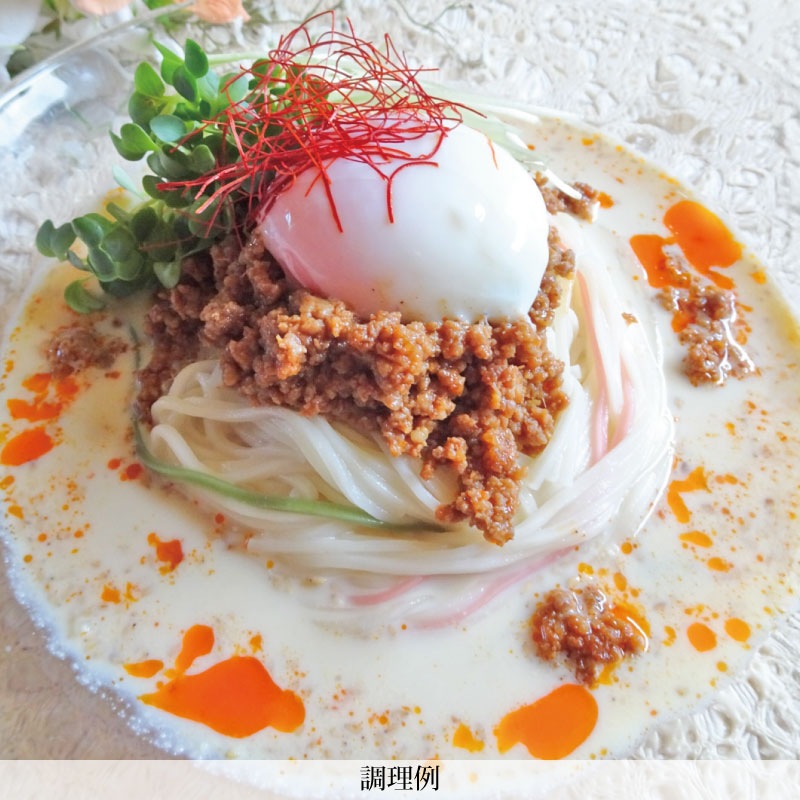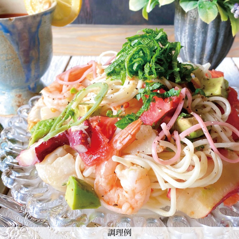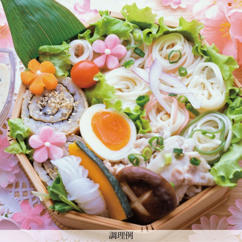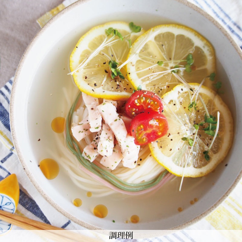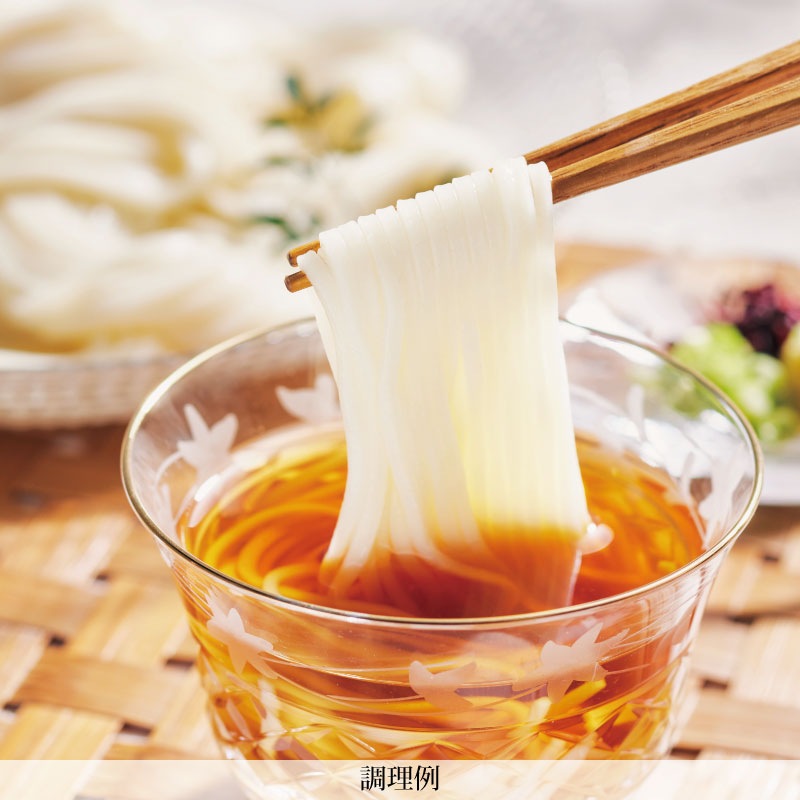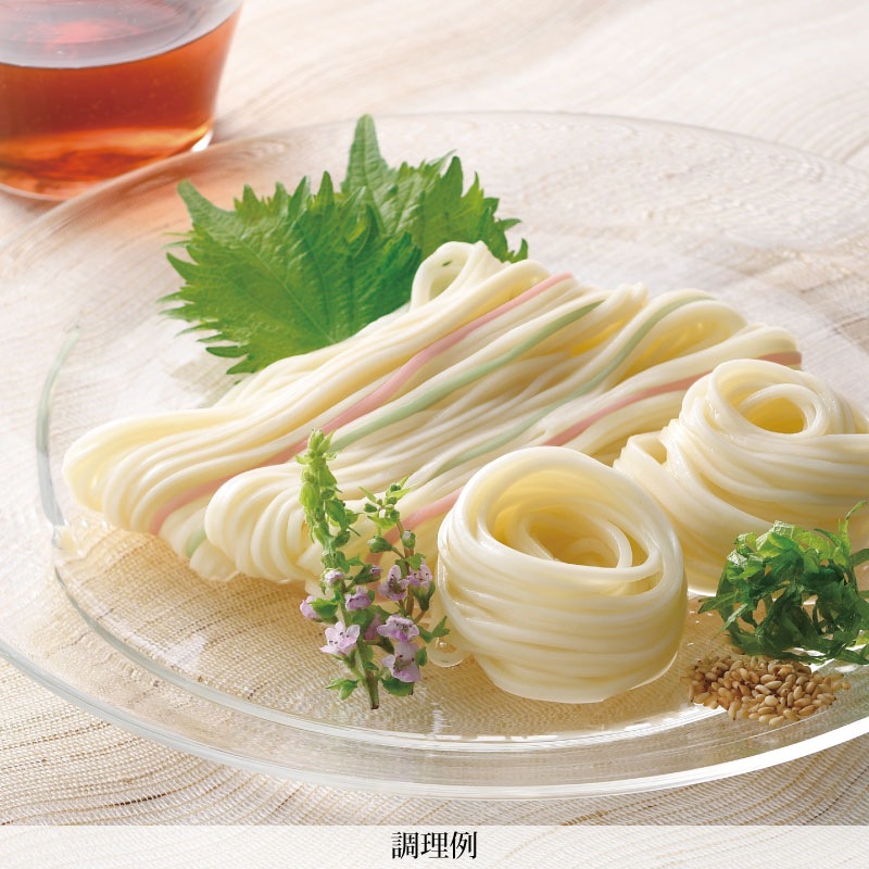 口当たりがソフトで、コシが強く、もちもちした食感のひやむぎです。 色麺入りなので、お子様にも喜ばれます。
