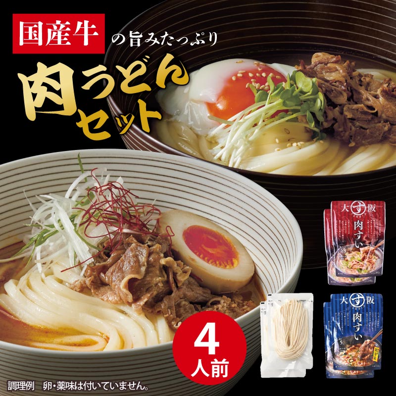 【4人前】 半生うどん包丁切り220g×2 肉すい180g×2 肉すい(韓国風旨辛味)180g×2 |