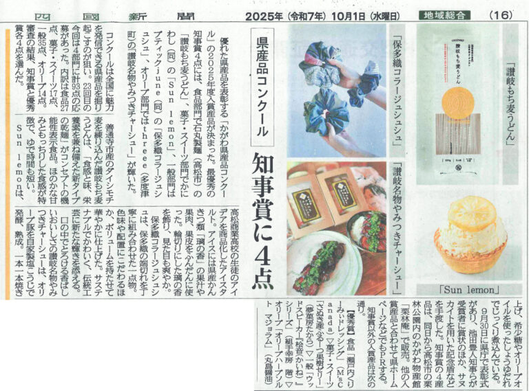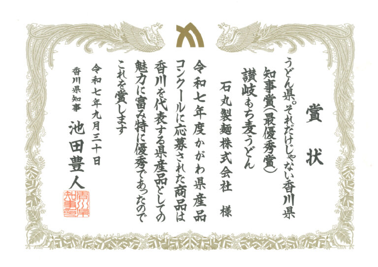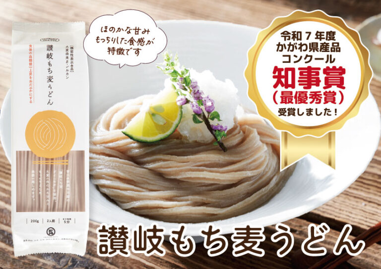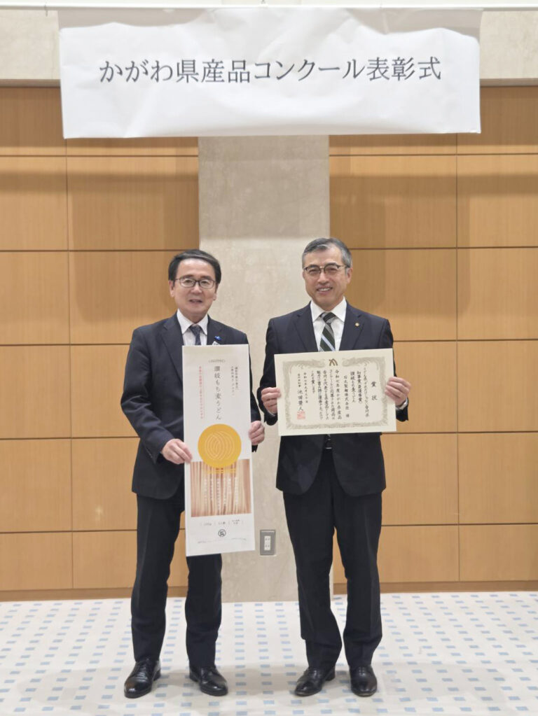 「讃岐もち麦うどん」が、「令和7年度かがわ県産品コンクール」食品部門において、県知事賞(最優秀賞)を受賞しました。