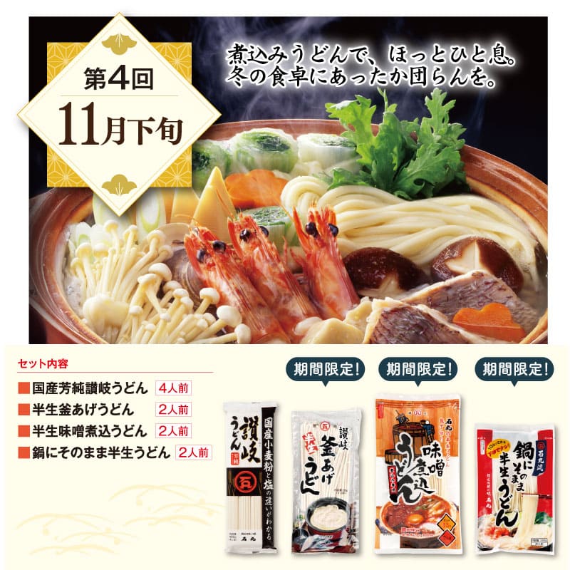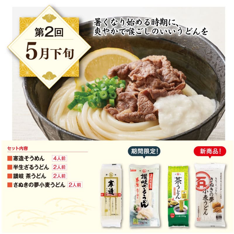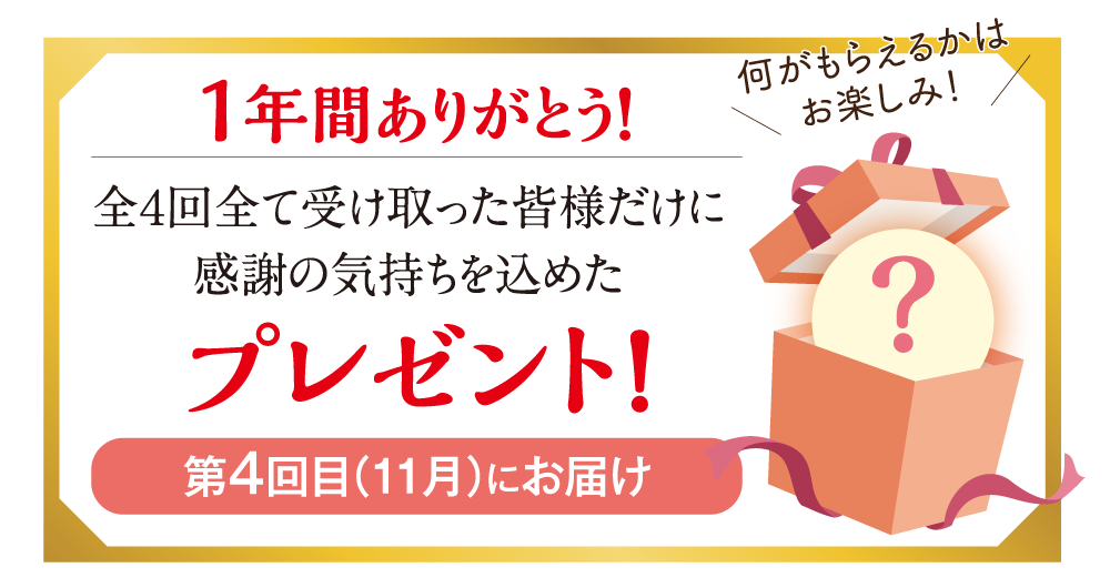 1度ご注文いただくと、2026年2月下旬、5月下旬、8月下旬、11月下旬の全4回、季節に合わせた商品をお届けします!
